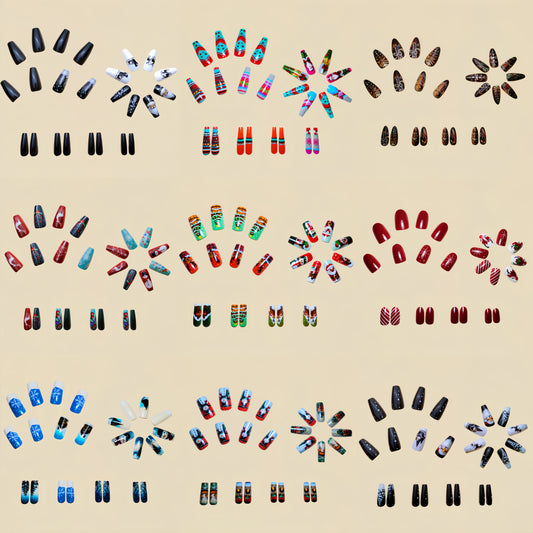 216pcs Christmas Press-On Nail Set - Festive Santa, Snowflake & Reindeer Designs with Glossy Finish - Long Ballet Shape - Perfect Holiday Gift for Women and Girls